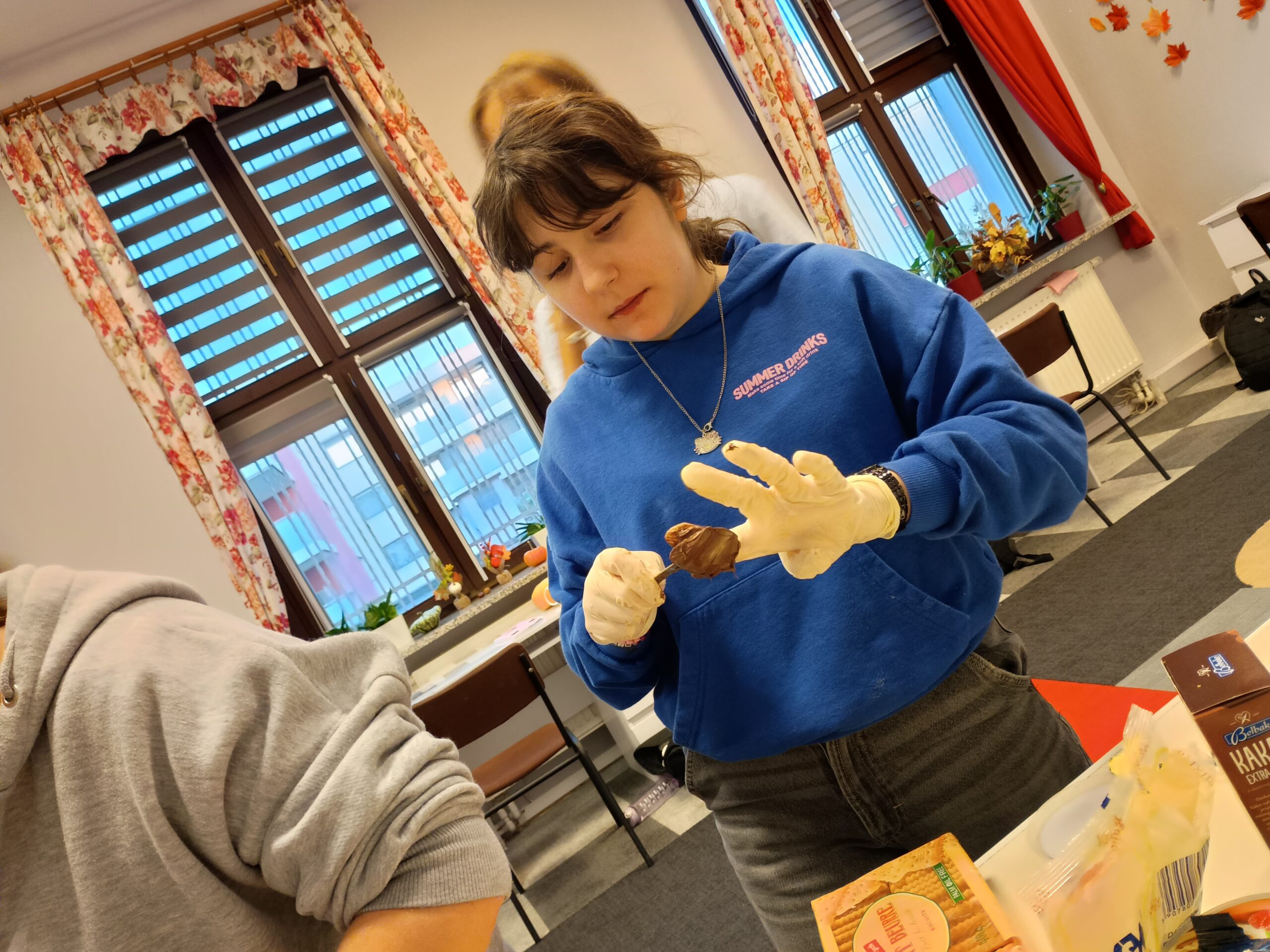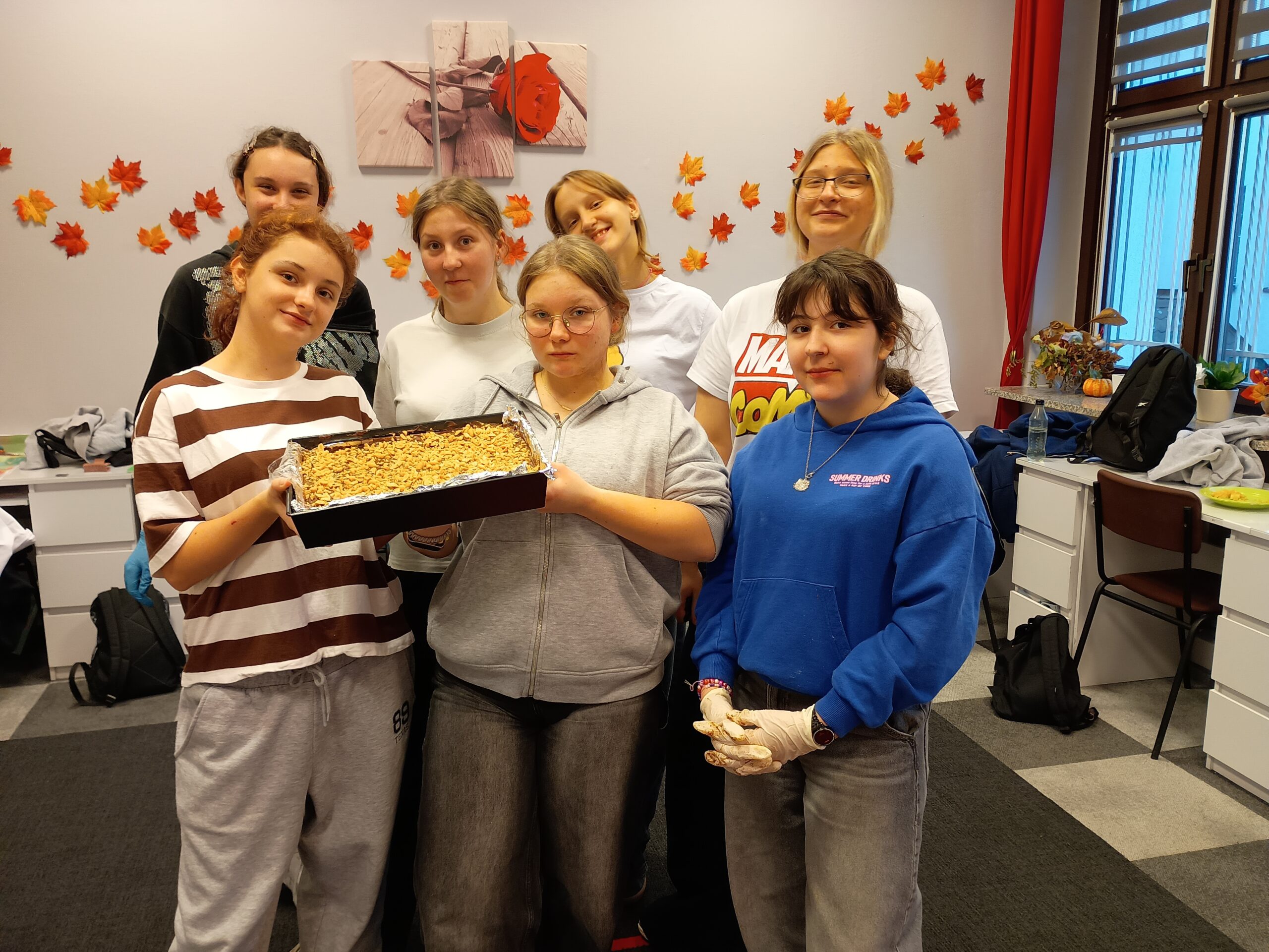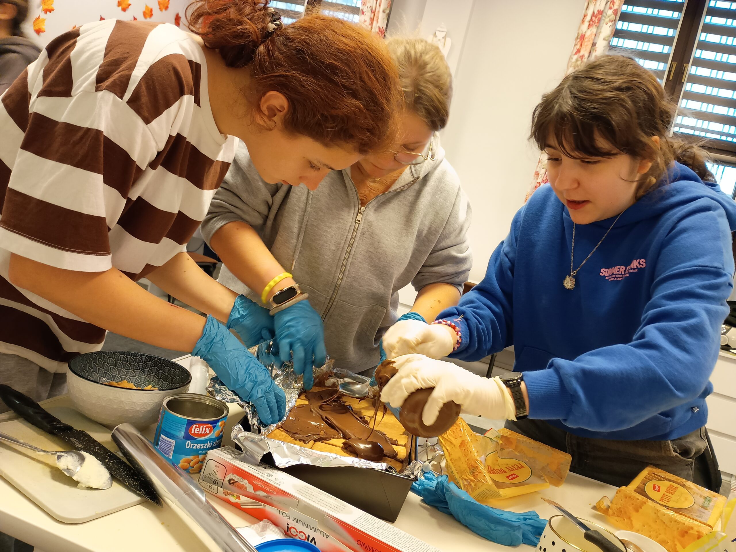 Po ukończeniu przygotowań ciasto zostało wstawione do lodówki, aby mogło się dobrze schłodzić i stężeć. Uczestniczki z niecierpliwością czekały na efekt swojej pracy, ciesząc się z dobrze wykonanych zadań. Zajęcia przyniosły dużo radości, integrowały grupę i pozwoliły dziewczętom rozwijać praktyczne umiejętności kulinarne w przyjaznej atmosferze. (E.S.)